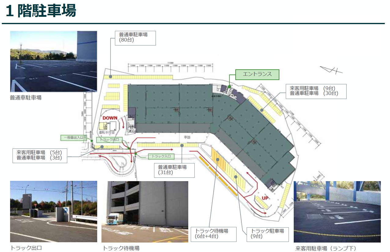 - ■駐車場390台(1階:179台、屋上:211台) ■トラック待機場19台