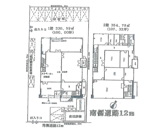 - ■1階103.58坪/2階108.80坪、1棟貸し ■男女別トイレ、給湯、キュービクル、エアコン等残置物あり ■駐車場敷地内約10台(車種・配置により増減)