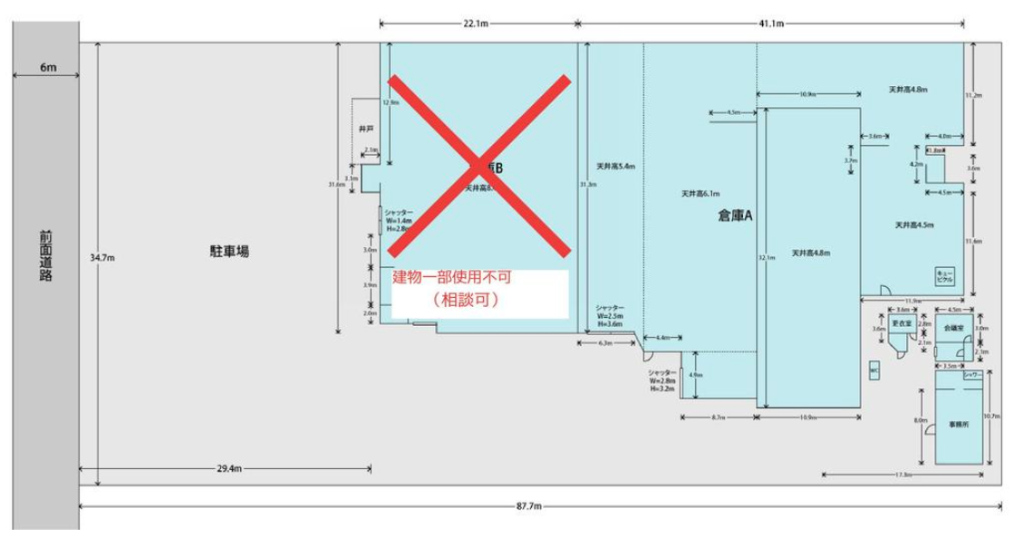 - ■大型車両駐車可能 ■トイレあり ■事務所あり