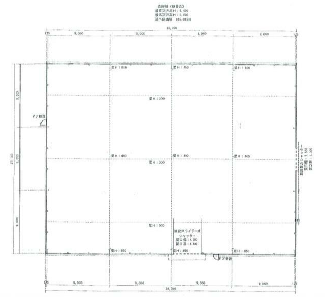 - ■平屋建て ■シャッター(W4.3m×H4.4m、W3.3m×H4m) ■トイレ ■車寄せスペース、荷積みスペース ■大型トラック搬入可