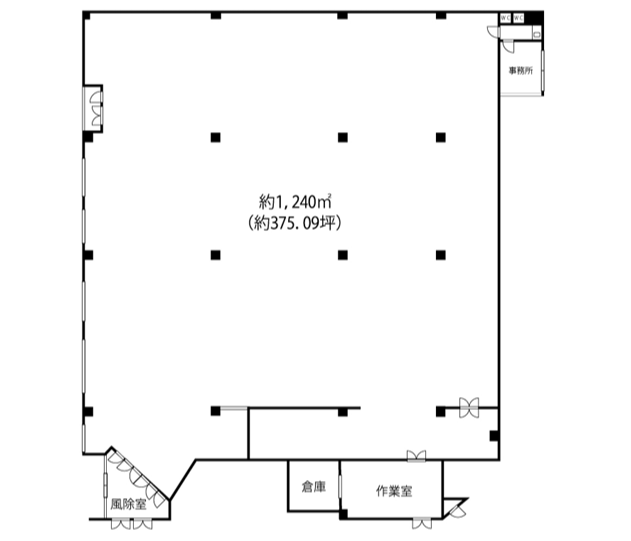 - ■ビルトインエアコン完備(残置物) ■男女別トイレ ■都市ガス、動力あり ■電動シャッター ■駐車場3台分以上(台数、料金応相談) ■1フロア1テナント ■24時間利用可、土日・祝日利用可 ■大型トラック搬入可 ■店舗相談可