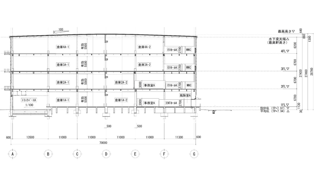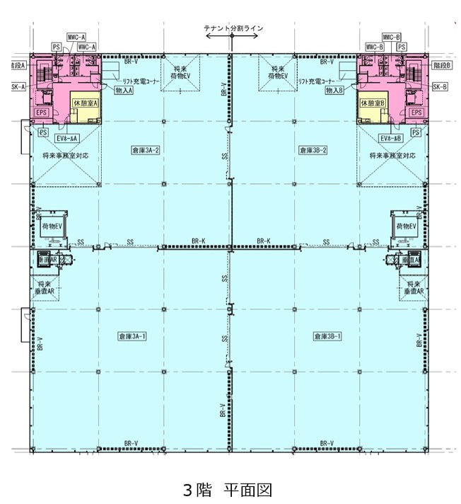 - ■エレベーターあり(2基) ■垂直搬送機あり(2基)