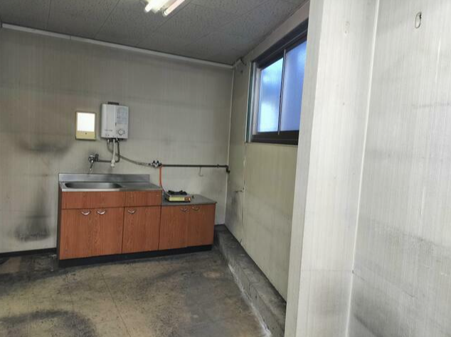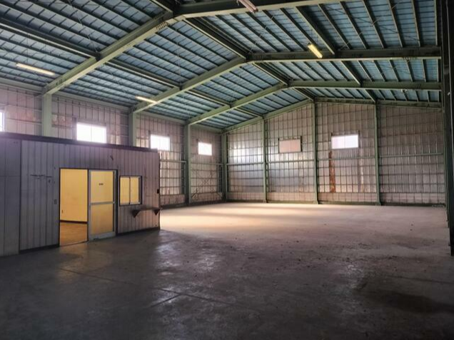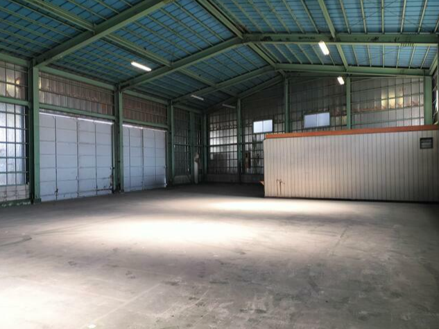 - ■平屋建て ■入口:幅約4.6m、高さ約3.9m ■電気、上下水道 ■前面駐車スペース約100㎡あり