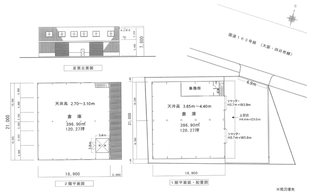- ■電動シャッターあり(W 約3.8m×H 約3.7m)