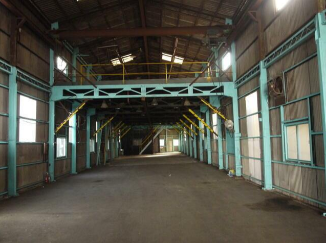 - ■1階123.38坪/2階69坪、1棟貸し ■2.8tクレーン2基、1tクレーン1基 ■屋内駐車スペース5~6台 ■トイレ、事務所、プレハブ(会議室)有り
