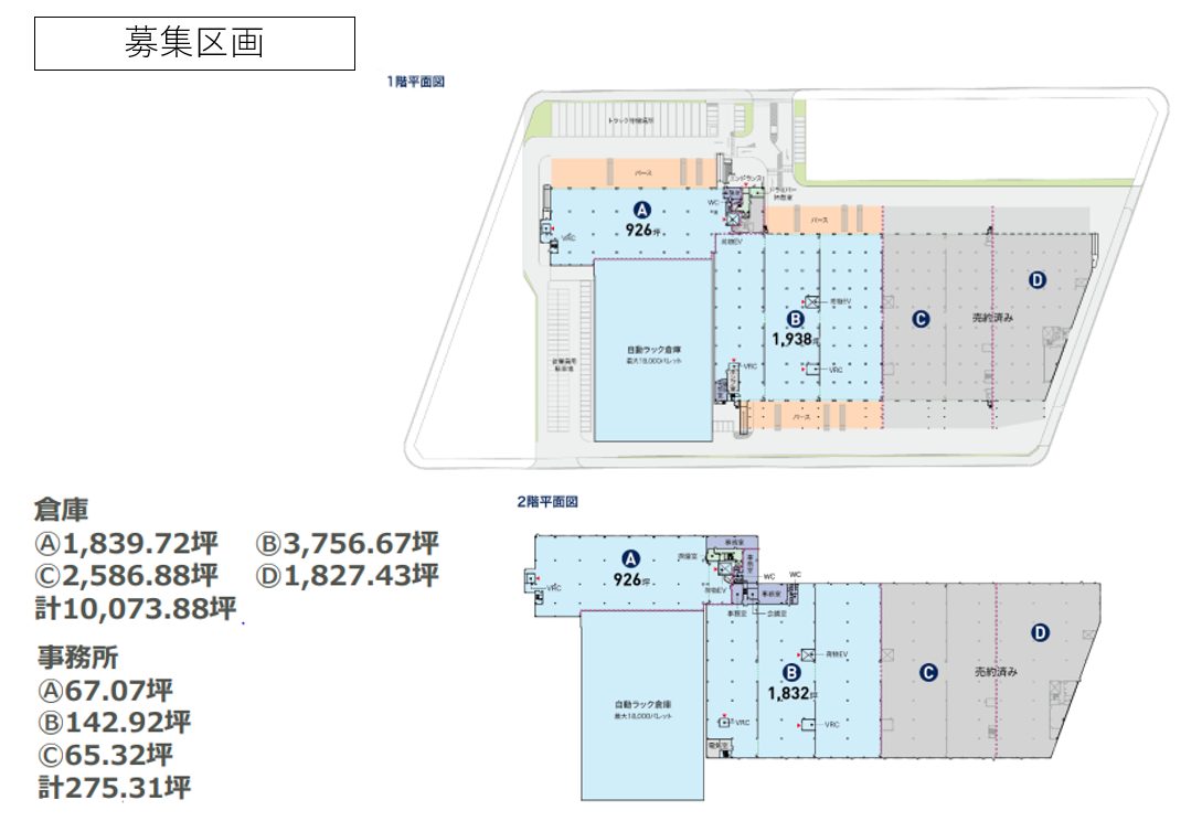 - ■高床式:東側1.0m/西側1.2m■床荷重:各階1t/㎡■梁下有効:1階6.5m/2階6.0m■東西両面バース(一部片面バース)■2004年9月増築