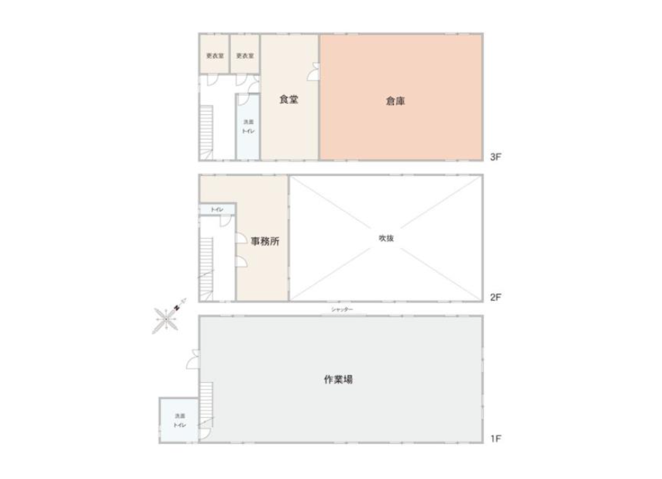 - ■1階作業場/2階事務所スペース・吹抜/3階倉庫・更衣室等、1棟貸し ■1階作業場クレーンあり ■動力あり ■トイレ、給湯 ■室内のものはすべて残置物 ■敷地内駐車スペース:普通車3台分 ■土日・祝日利用可