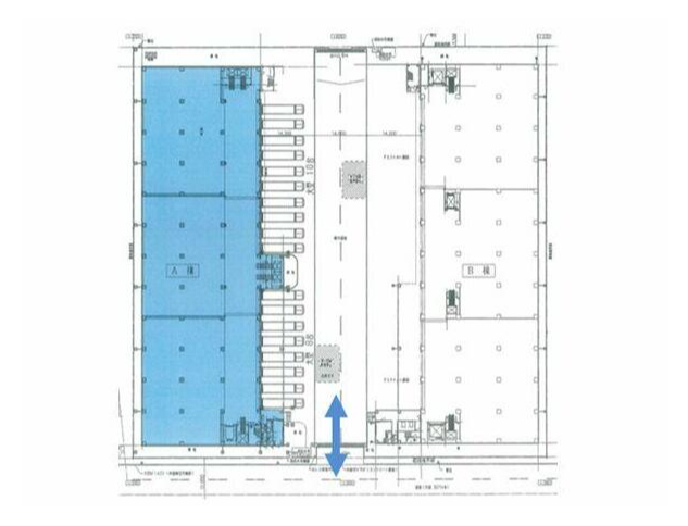 - ■1階980.96坪/2階980.96坪/3階814.69坪/別棟休憩室10坪 ■貨物用EV1基 ■垂直搬送機5基 ■1・2階幅102m×奥行31.3m ■電動移動ラック(4963P/L)