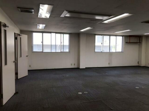 - ■倉庫1-2階各213.6坪 ■2階建事務所 ■貨物用EV(3t) ■トイレ2ヶ所 ■駐車場3台分以上 ■ヤード大(敷地507坪) ■大型トラック搬入可