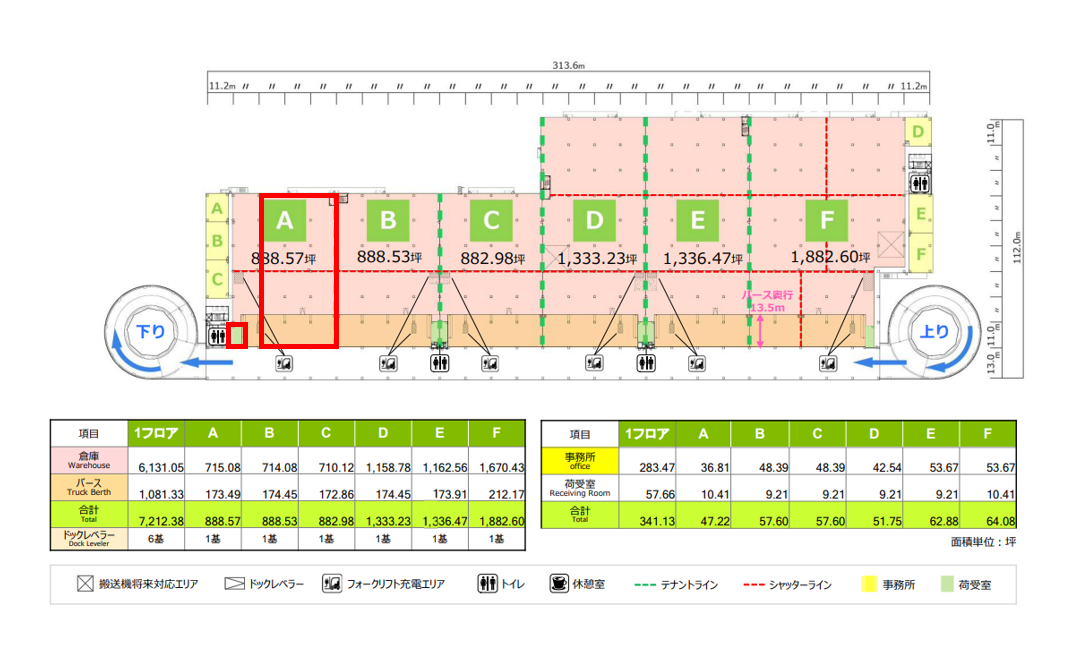 - ■倉庫4階A区画670.82坪/4階荷受け事務所10.41坪 ■倉庫内にシーリング・ファンを設置 ■各階接車バース付き、平屋使い可能倉庫 ■八千代中央駅より直通リムジンバス運行 ■従業員向けに、無人コンビニ、食堂完備