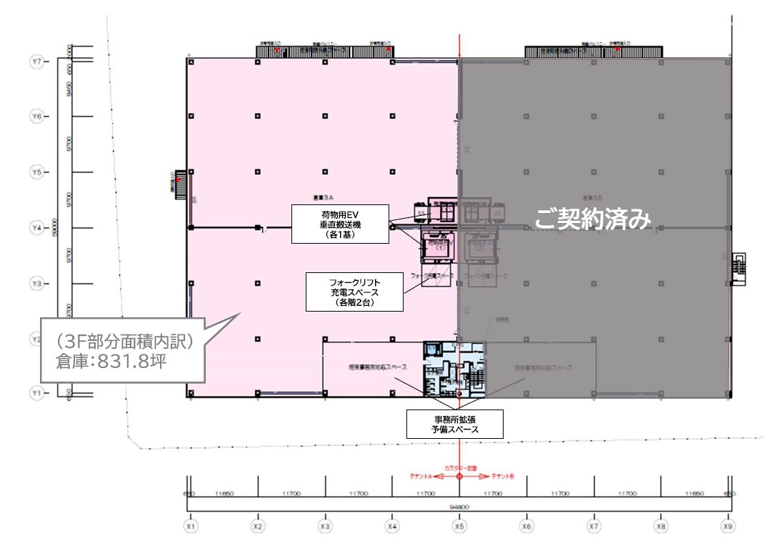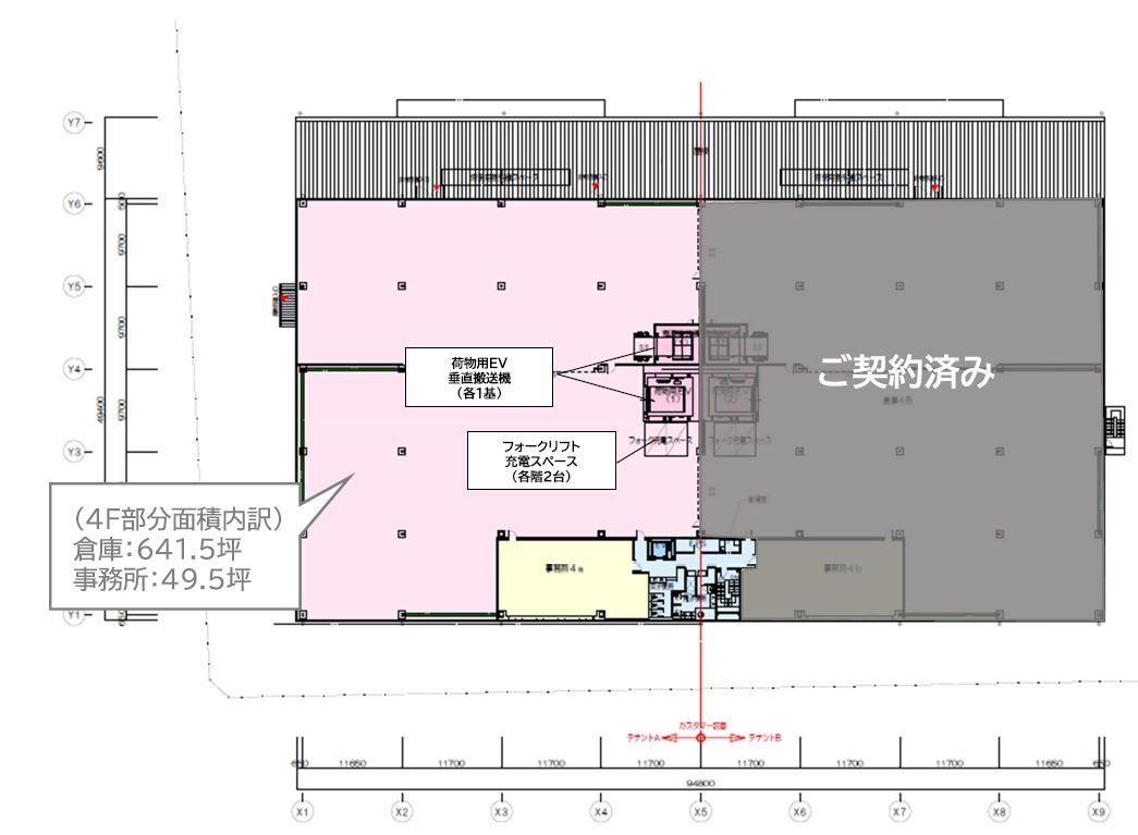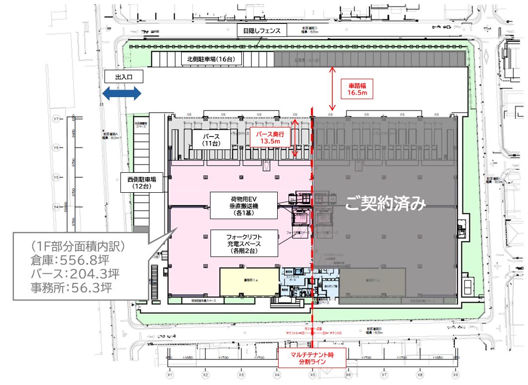 - ■荷物用エレベーター(3.5t) 2箇所 ■垂直搬送機(1.5t) 2箇所 ■駐車場 普通車55台