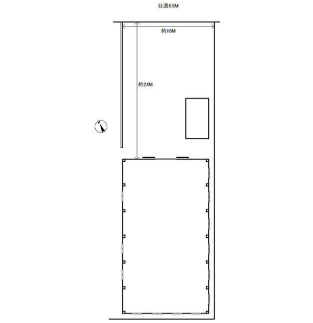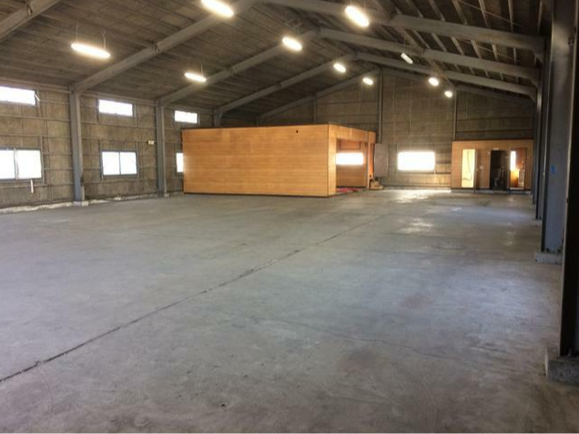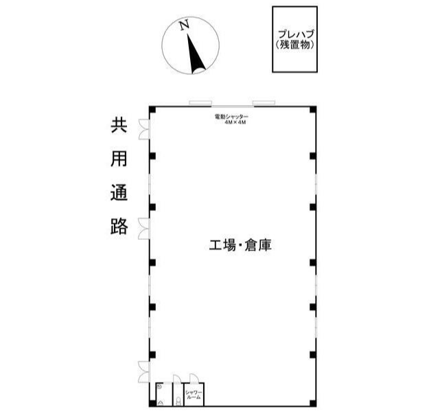 - ■平屋建て ■シャワールーム ■トイレ2ヶ所、電気 ■プレハブ(残置物) ■駐車場3台分以上 ■大型トラック搬入可 ■天井高2.5m以上