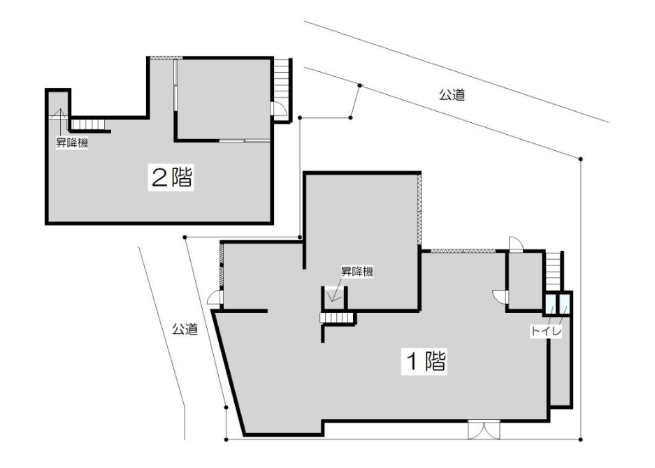 - ■1階162.17坪/2階77.13坪、1棟貸し ■昇降機 ■シャッター ■トイレ