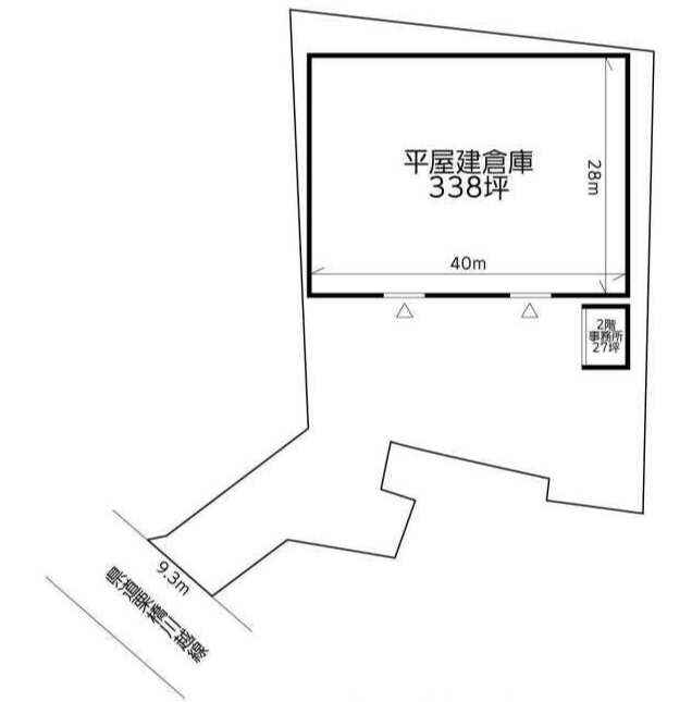 - ■平屋建て倉庫約338坪/木造2階建事務所約27坪 ■浄化槽点検清掃費等借主負担
