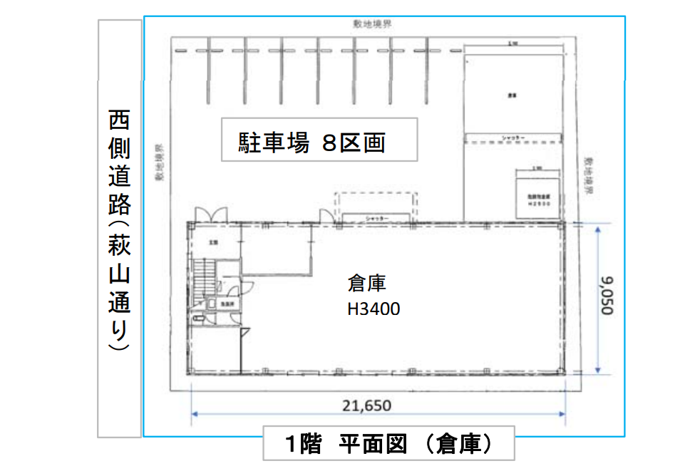 - ■1階倉庫59.26坪/2階事務所59.26坪/1階増築部分17.24坪 ■電気、ガス、上下水道 ■エアコン更新済み ■LED照明 ■電動シャッター ■駐車場8区画