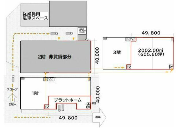 - ■荷物⽤EV2基(専用5t・共用3t) ■天井高2.5m以上 ■1階共⽤プラットホーム利⽤可能(10t⾞搬出入可能) ■2階倉庫までトラック自走により直接搬出入可能 ■約20坪事務所スペース、駐車場別途相談可 ■トイレ、更衣室 ■2階休憩室付近一部共有スペースあり ■物流委託契約相談可能