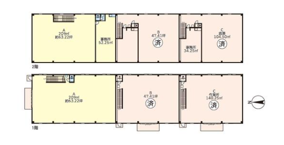 - ■1-2階各63.22坪 ■電動シャッター ■トイレ、照明